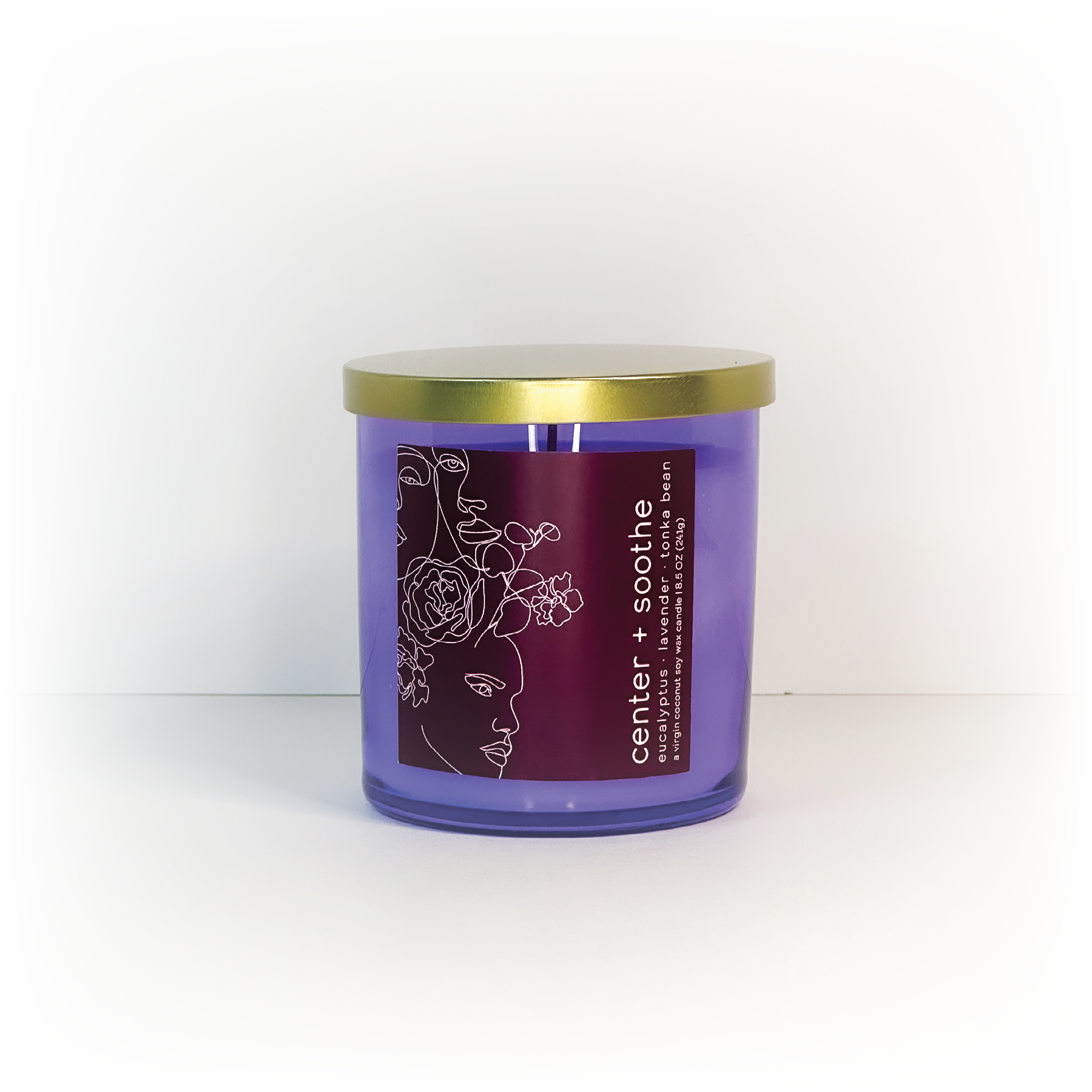 Introducing 'Center + Soothe' – a candle designed to help you relax. When you light this candle, the fresh scents of lavender and green florals awaken your senses and create a peaceful atmosphere. The heart of the candle features calming chamomile and mild eucalyptus, making your space feel like a luxury spa. Finally, soft woods and vanilla provide a comforting finish. Use 'Center + Soothe' during your self-care routines to bring balance and calm with every burn.