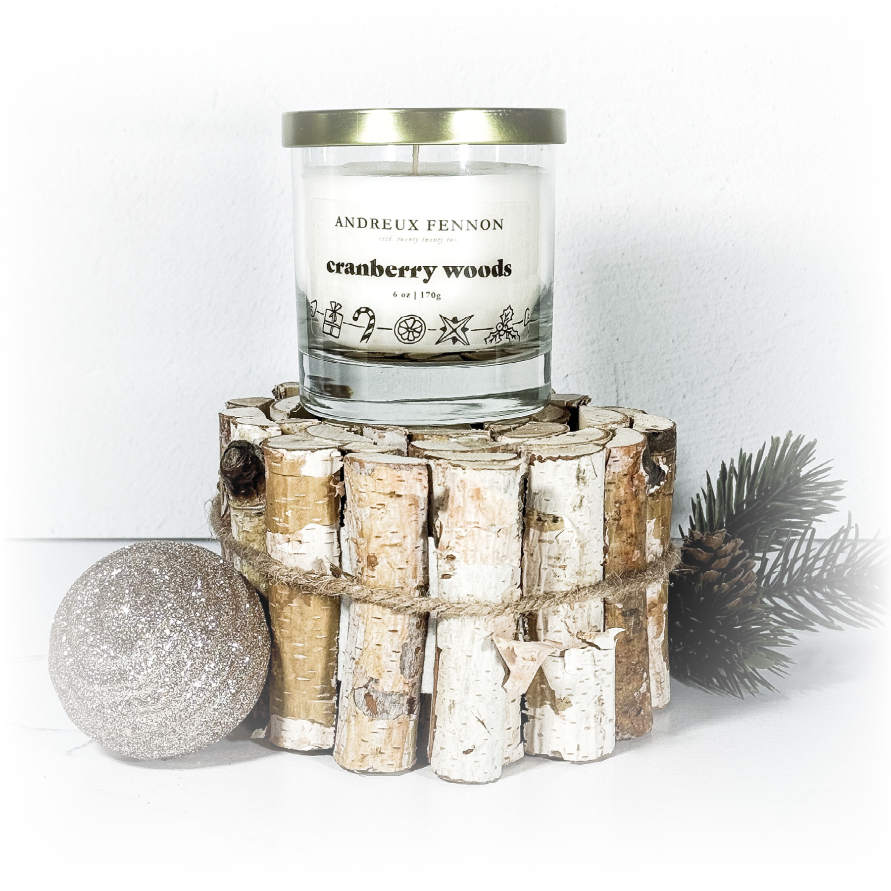 Celebrate the warmth of winter with Cranberry Woods, where tart cranberries and red currants meet a touch of cinnamon spice. Sweet black currant, crisp green leaves, and a creamy vanilla base mingle with fir and pine for an aromatic, cozy forest experience. A festive, aromatic treat ideal for small gifts and holiday stockings.