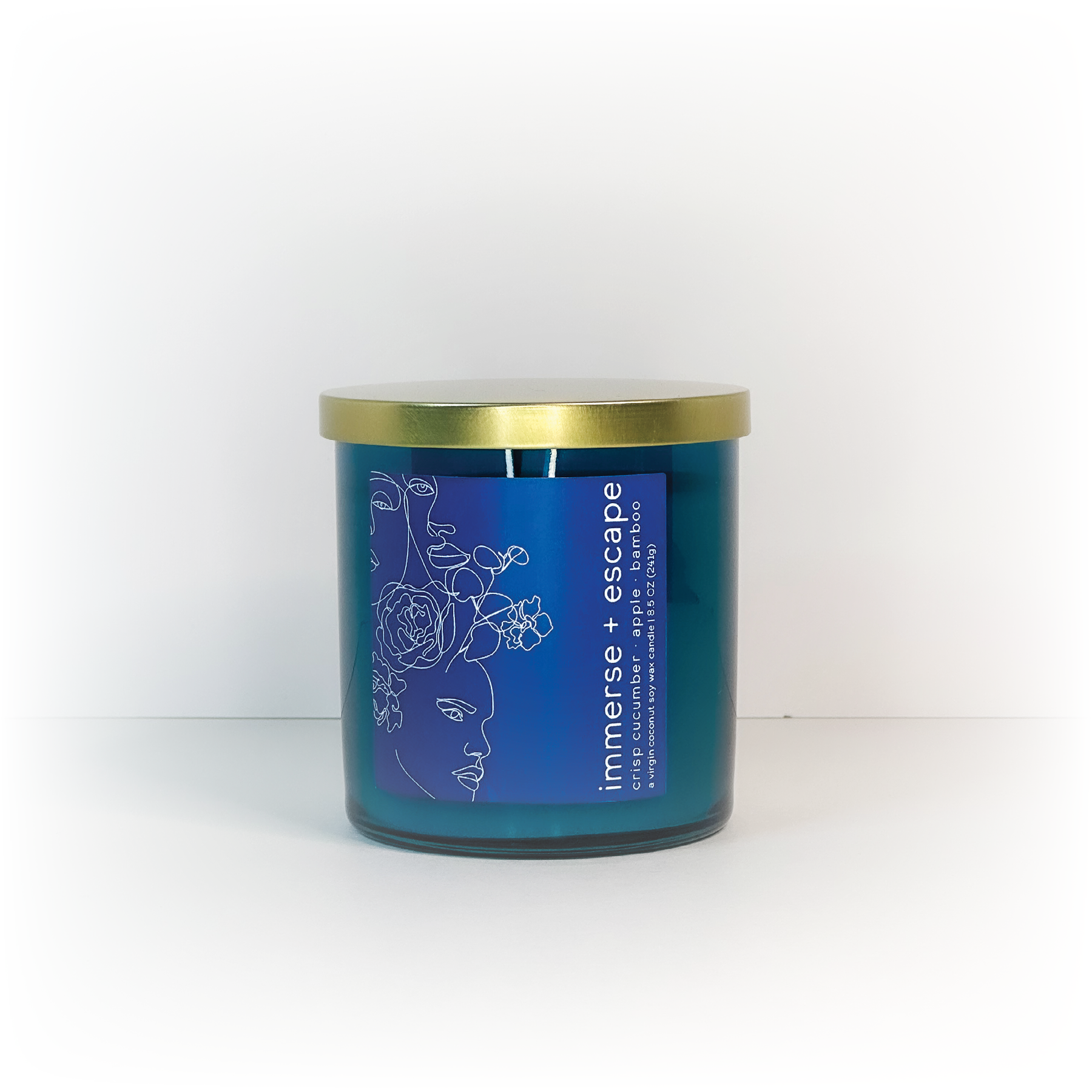 Transform your space into a sanctuary of serenity with our 'Immerse + Escape' candle, a standout gem in our spa collection. This enchanting blend harmonizes the ethereal floral essence of bluebells with the crisp, invigorating scent of cucumber leaf, evoking the peaceful allure of a tranquil woodland retreat. Ignite this candle to envelop yourself in pure relaxation, creating an atmosphere that melts away the stresses of everyday life. Allow the refreshing essence of nature to wash over you, inviting deep calm and rejuvenation with every flicker. Embrace the luxury of escape and immerse yourself in blissful tranquility.